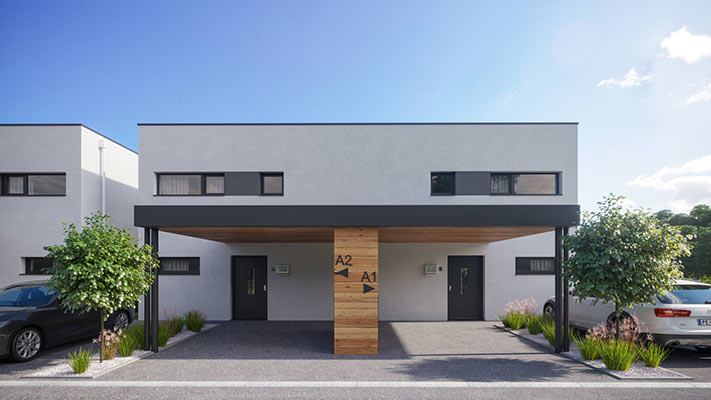 Das Doppelhaus B15 aus Betonfertigteilen wurde bezogen
